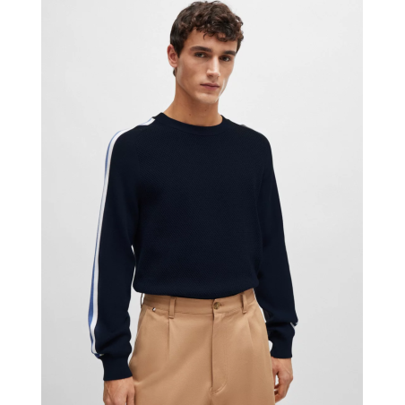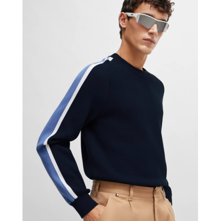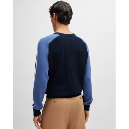 Pull Boss, design color block sur les manches, regular fit, col rond, manche longue, poignets côtelés.