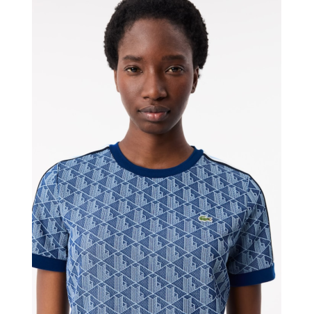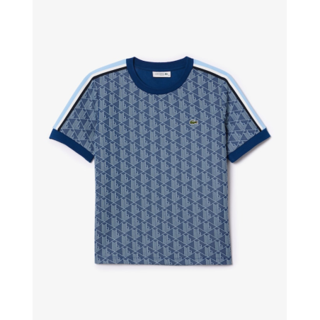 Tee-shirt Lacoste, slim fit, coupe ajustée, monogramme tricoté en jacquard sur l'ensemble, bandes rayées aux épaules et manches, crocodile brodé cousu sur la poitrine.