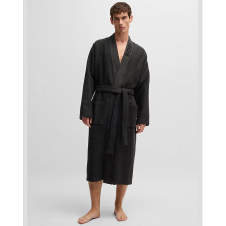 Peignoir Boss, piqué gaufré léger, ornée d’un logo brodé sur le revers, col kimono.