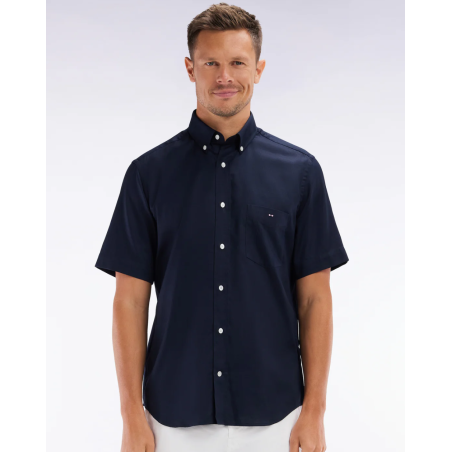 Chemisette Eden Park, col classique à pointes boutonnées, coupe Regular droite, poche poitrine à broderie emblème nœud papillon, boutons rugby ovales siglés, pli dos, bords arrondis.