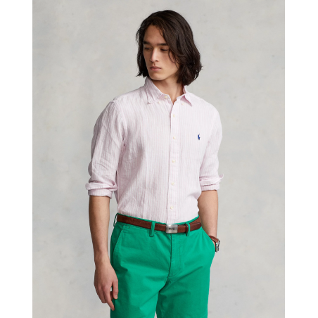 Chemise Polo Ralph Lauren, custom Fit : silhouette située entre notre coupe classique et notre coupe cintrée, ajusté au niveau de la taille, col à pointes boutonné, patte boutonnée, manches longues avec poignets à boutons, empiècement dos avec découpe et pli rond pour plus de confort et d'aisance de mouvement, poney distinctif brodé sur la poitrine à gauche.