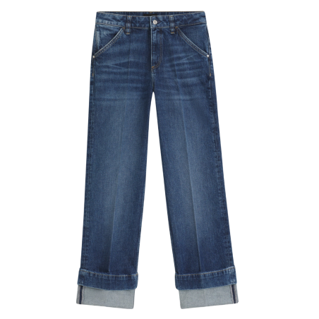 Avec son délavage indigo et ses surpiqûres couleur tabac, ce jean Slim BOSS Femme est un classique authentique. Coupe droite et revers. Denim stretch confortable.