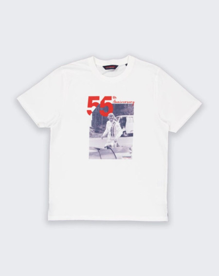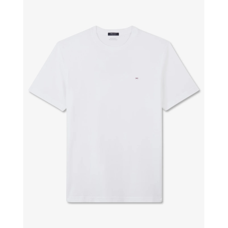 Col rond, coton Pima, finitions bords côtes au col, broderie emblème nœud papillon sur la poitrine et dans le dos, coupe Regular droite.