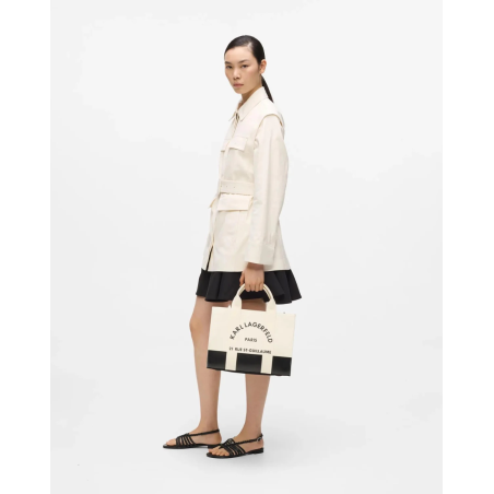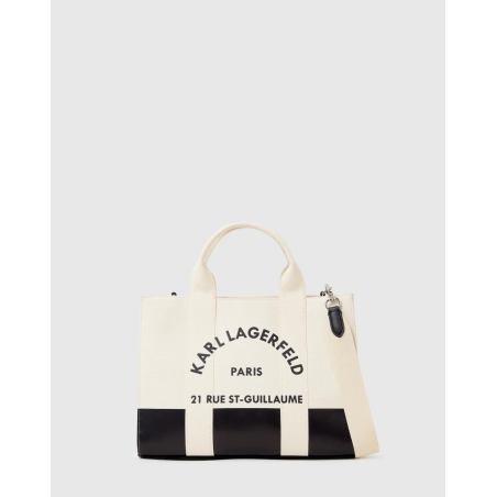 Une silhouette carrée contemporaine définit ce tote bag de taille moyenne, doté d'une fermeture zippée sécurisée sur le dessus. Avec des poignées jumelles sur le dessus et une sangle amovible, il offre des options de transport polyvalentes. Le logo Rue St-Guillaume distinctif et les détails contrastés confèrent une touche de style à cet article essentiel du quotidien.