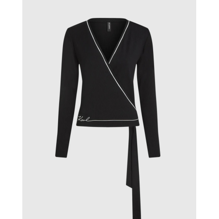 Silhouette drapée avec col en V, manches longues, coutures contrastantes et logo Signature. Personnalisez-le avec le pantalon d'intérieur assorti.