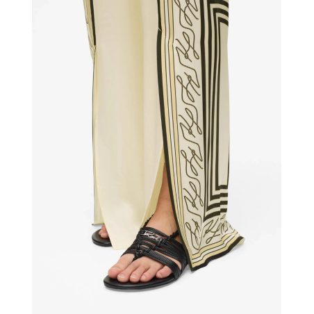 Ce pantalon à la silhouette fluide à jambes larges arbore des ourlets fendus sur le devant, offrant une grande liberté de mouvement. La taille élastiquée assure un confort optimal, tandis que le sublime imprimé foulard Autograph lui apporte une touche visuelle percutante.
